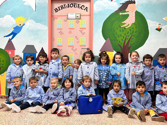 El grupo de 5 años se muestra muy contento con el marcapáginas, que le hemos regalado, de nuestra biblioteca |